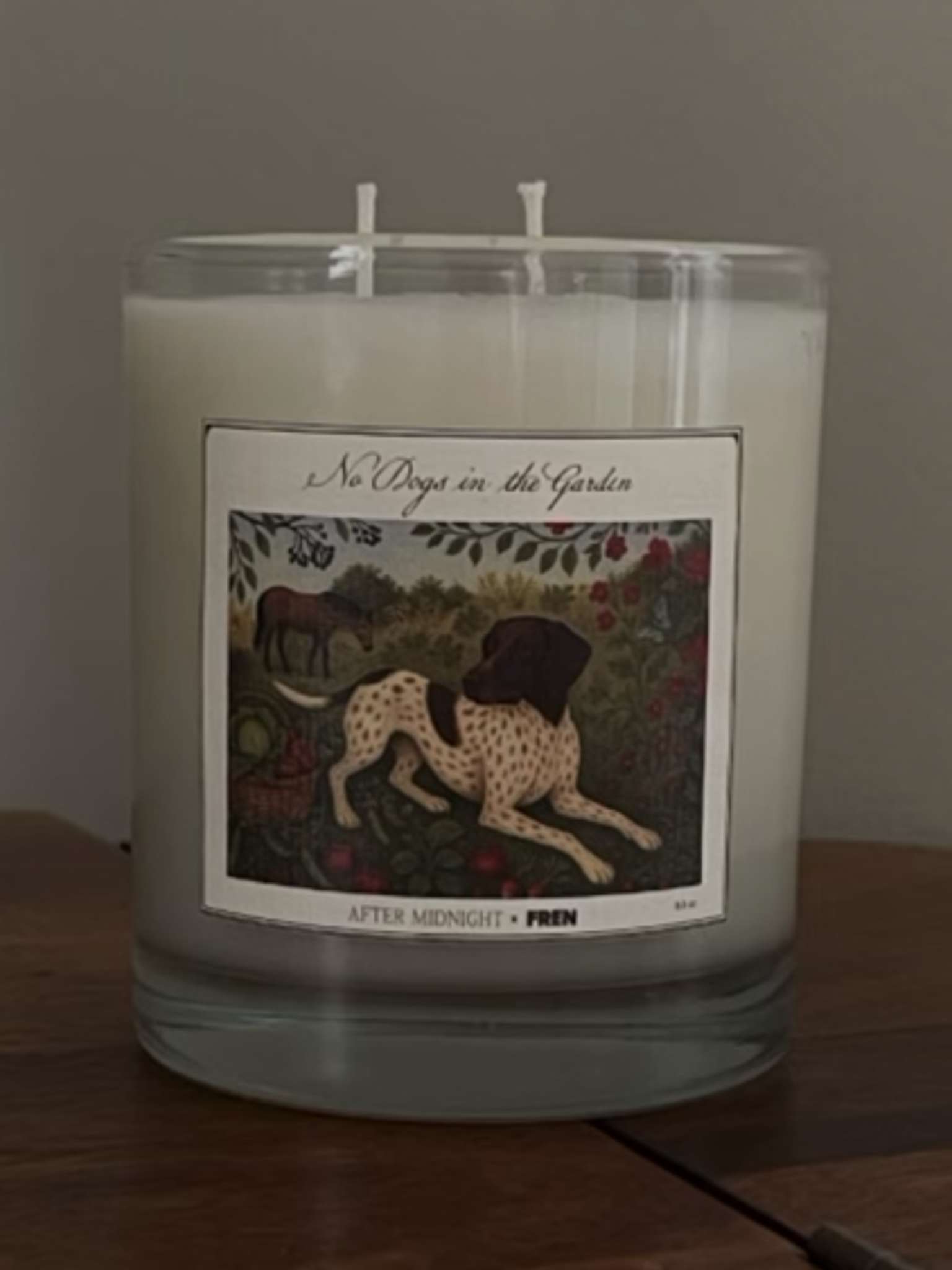 Introducing After Midnight x FREN: No Dogs in the Garden. We created this candle as an ode to our shared love for both candles and dogs. Our inspiration came from watching Willie, who couldn’t resist running around the garden—which led us to say, “No dogs in the garden!”